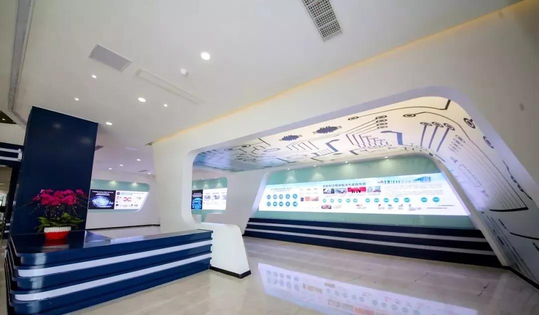 數(shù)字化的智慧展廳的建設對企業(yè)尤為重要,是對外展示企業(yè)形象的重要窗口,是企業(yè)自身的形象名片。先導智能展廳大樓整體及內部設計無不體現(xiàn)大企風貌,結合LOGO的元素為主色調,凸顯展廳風格和企業(yè)文化。進門大廳的梯形屏與造型相互映襯,融為一體,甚是美觀。